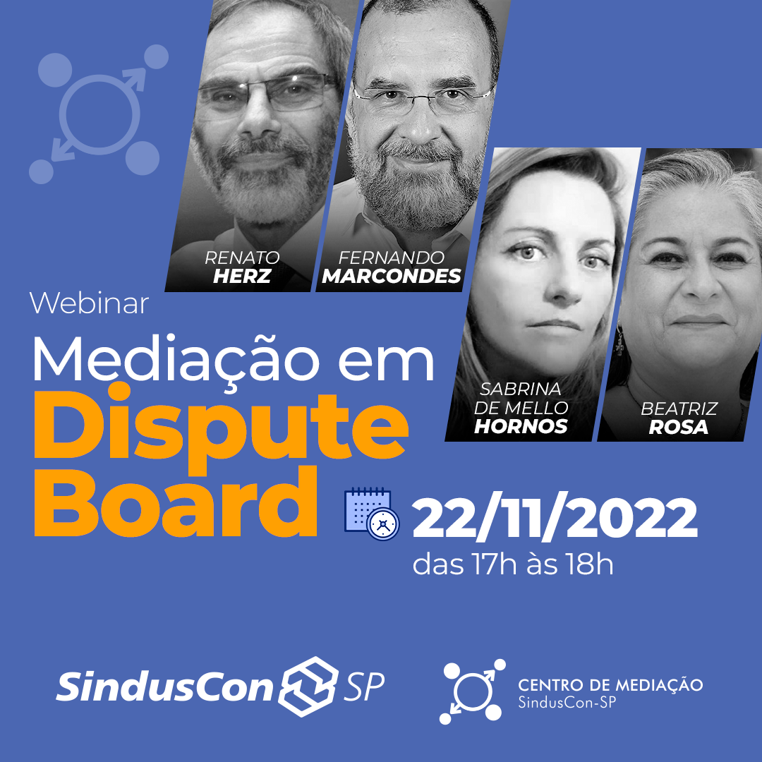 Link inscrições: https://sindusconsp.com.br/eventos/webinar-cms-mediacao-em-dispute-board/